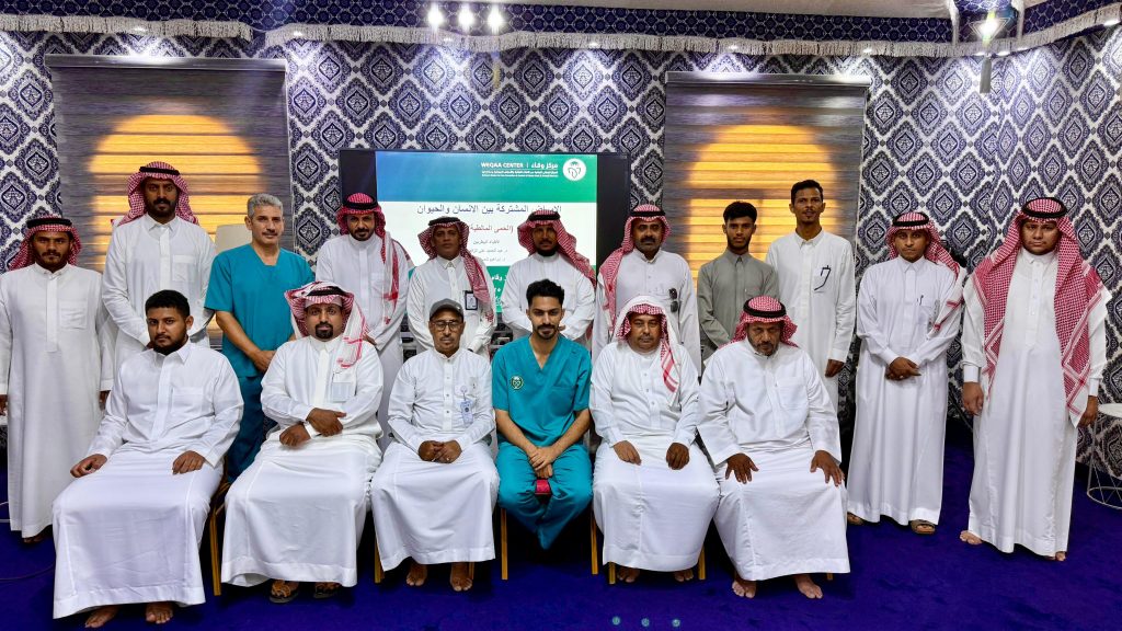نظم مكتب وزارة البيئة والمياه والزراعة بمحافظة الليث، بالتعاون مع المركز الوطني للوقاية من الآفات النباتية والحيوانية “وقاء”، اليوم ندوة إرشادية بعنوان: “الأمراض المشتركة بين الإنسان والحيوان (الوقاية والعلاج)”.