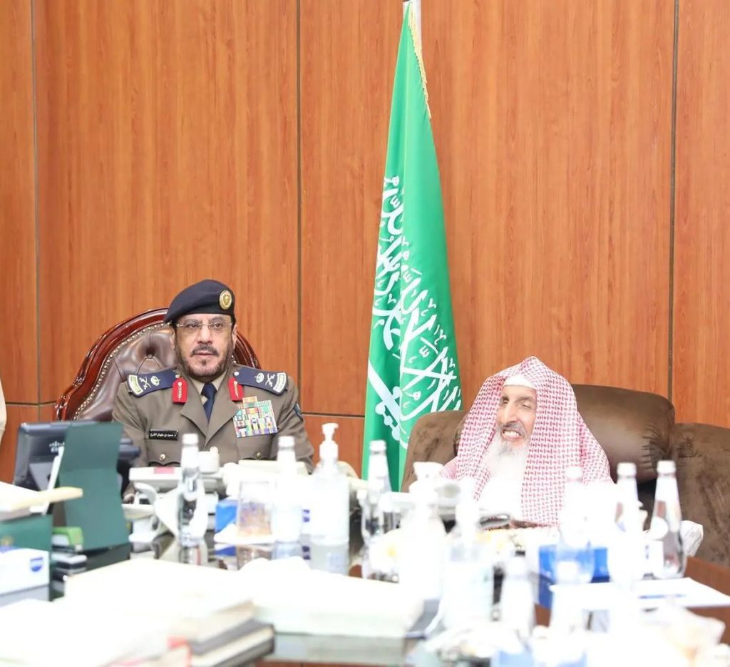 استقبل سماحة مفتي عام المملكة رئيس هيئة كبار العلماء رئيس اللجنة الدائمة للبحوث العلمية والإفتاء الشيخ عبدالعزيز بن عبدالله بن محمد آل الشيخ بمكتبه في الرئاسة العامة للبحوث العلمية والإفتاء اليوم، مدير عام الدفاع المدني اللواء الدكتور حمود بن سليمان الفرج.