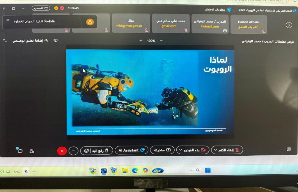 نظّمت الإدارة العامة للتعليم بمحافظة الطائف لقاءً تعريفيًا عبر منصة Webex بمناسبة انطلاق فعاليات الأولمبياد العالمي للروبوت WRO®️ Saudi 2025، بحضور المعلمين والمعلمات، وبمشاركة عدد من الطلاب والطالبات.