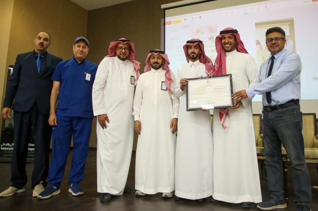 كرم مدير عام التدريب التقني والمهني بمنطقة مكة المكرمة المهندس / حسين بن علي البحيري رئيس وحدة الصحة والسلامة المهنية بالكلية التقنية بالطائف المهندس محمد بن علي عسيري والدكتور / حمدي محمد سليم طبيب الوحدة الصحية بالكلية بشهادات شكر وتقدير من الإدارة العامة للتدريب التقني والمهني بالمنطقة ، وذلك نظير جهودهما في حصول الكلية على شهادة الامتثال التي منحتها هيئة الهلال الأحمر السعودي ضمن مبادرة ( معاذ ) .