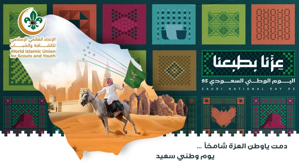 رفع الأمين العام للاتحاد العالمي الإسلامي للكشافة والشباب الدكتور زهير بن حسين غنيم لمقام خادم الحرمين الشريفين الملك سلمان بن عبد العزيز ولسمو ولي عهده الأمين رئيس مجلس الوزراء صاحب السمو الملكي الأمير محمد بن سلمان بنعبدالعزيز- حفظهما الله ورعاهما- ، ولكافة الشعب السعودي النبيل أصدق التهاني والتبريكات بمناسبة اليوم الوطني السعودي95 .