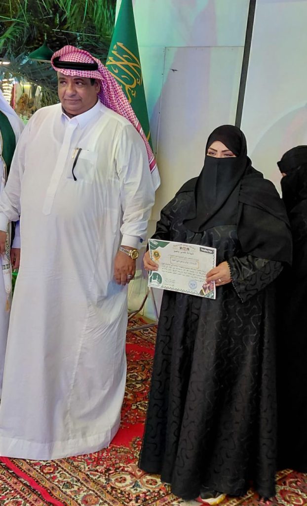 الزميلة الأستاذة نوال مسلم- من مكتب صحيفة صدى بمنطقة مكة المكرمة -بمناسبة مشاركتها المتميزة في فعاليات اليوم الوطني لوطننا الحبيب في الذكرى( 95)
