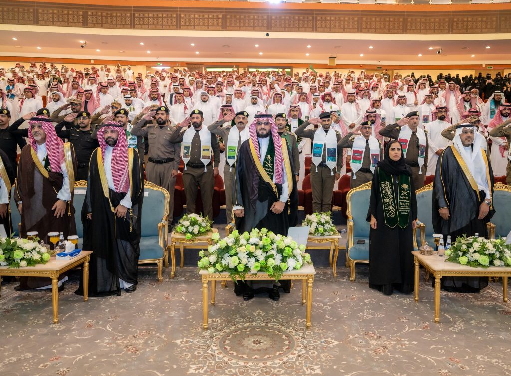 وتوالت بعد ذلك فقرات الحفل التربوية، حيث شاهد الحضور لوحة إنشادية بعنوان “رؤية وطن وعطاء قيادة” من كلمات الدكتور علي الرباعي وبمشاركة طلاب وطالبات التعليم، تضمنت عدداً من اللوحات الفنية التي جسدت مسيرة المملكة منذ تأسيسها حتى حاضرها الزاهر، وما شهدته منطقة الباحة من تطور وازدهار. كما تنوعت العروض المقدمة بين الفقرات الإنشادية والوطنية التي عبّرت عن مشاعر الفخر والانتماء، ورسخت قيم الاعتزاز بالوطن وقيادته.