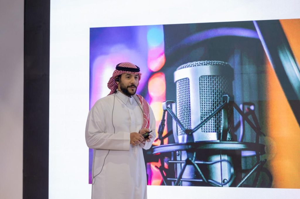 كما استعرض المراحل التي يمر بها المعلق الصوتي من مرحلة التقليد إلى الاحتراف، متناوِلًا تنوع مجالات العمل في التعليق الصوتي، من الإعلانات إلى الوثائقيات والبودكاست.