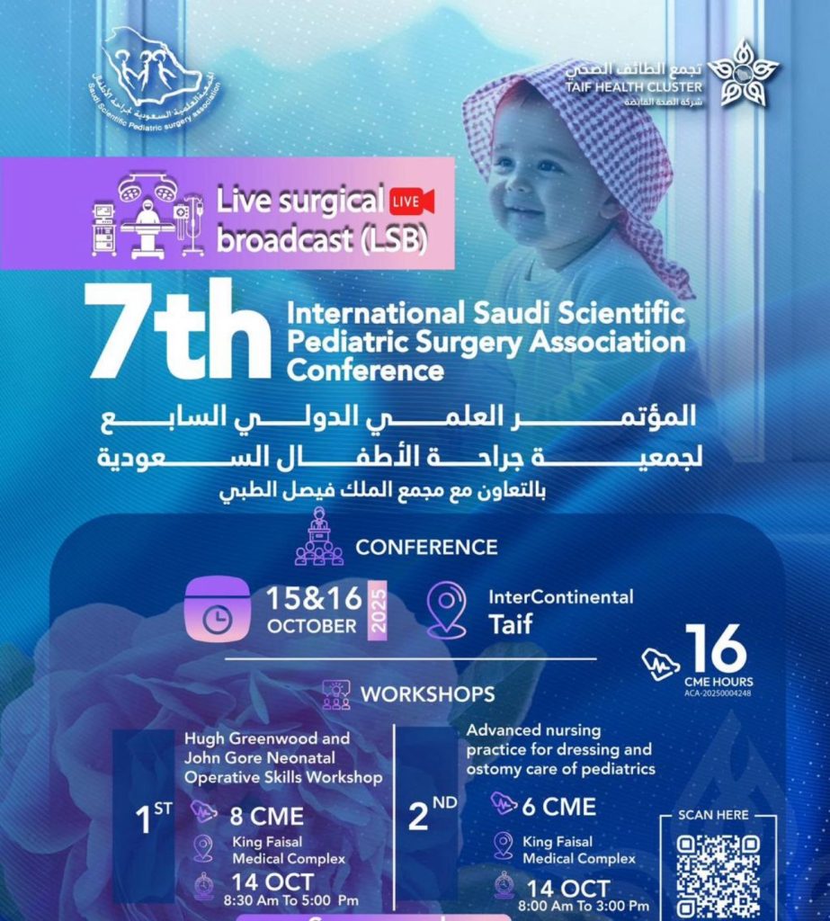 تنطلق غدًا الثلاثاء الموافق 14 أكتوبر 2025م، ورشة عمل متخصصة بعنوان “المهارات الجراحية”، وذلك ضمن فعاليات الملتقى العلمي الدولي لجراحة الأطفال 2025، المصاحب للمؤتمر الدولي السابع للجمعية العلمية السعودية لجراحة الأطفال، والذي يُقام برعاية التجمع الصحي بمدينة الطائف في فندق إنتركونتيننتال الطائف خلال الفترة من 14 إلى 16 أكتوبر الجاري.