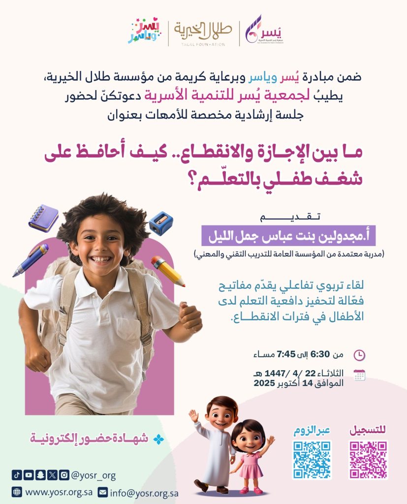 وأشارت اللقاء تربوي تفاعلي يقدّم مفاتيح فعّالة لتحفيز دافعيّة التّعلم لدى الأطفال في فترات الانقطاع.