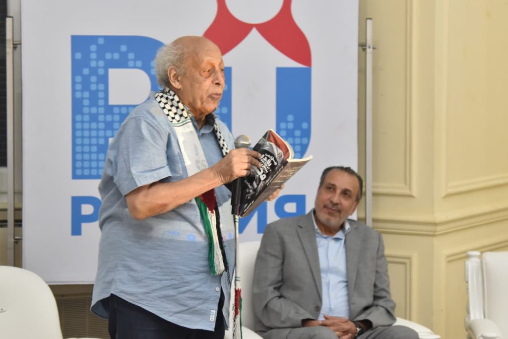 أدار اللقاء شريف جاد الأمين العام لجمعية الصداقة المصرية الروسية ومدير النشاط الثقافي بالبيت الروسي الذي أشار الى ان الشاعر الكبير ابن أسوان يُعد واحدًا من أهم شعراء الكلمة الوطنية، وأن فكرة اللقاء جاءت للاستمتاع بأشعاره بمناسبة مرور 52 عاما على الاحتفالية التي قدمها هنا بالمركز، وأيضا للاستمتاع برؤية ما التقطته كاميرته التي لا تفارقه لأنه عاشقًا للصورة، وكل صورة يلتقطها “عم زين” كما يلقبه جمهوره هي صورة لها دلالة، وتوثيقًا لحدث أو موقف مرتبط بأحداث وطنية وثقافية، أو برموز من المفكرين والشخصيات المؤثرة.