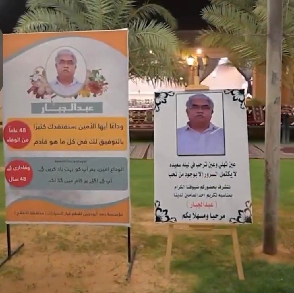 في زاوية من زوايا الأفلاج حيث تختلط رائحة البن بزيت المكائن اجتمع رجال المحافظة في ليلة مختلفة ليلة وداعٍ لرجل لم يكن غريبًا بل كان جزءًا من ذاكرة المكان اسمه عبدالجبار — الهندي الذي جاء شابًا قبل 48 عامًا فصار مع الزمن أبًا وأخًا وصديقًا لكل من عرفه