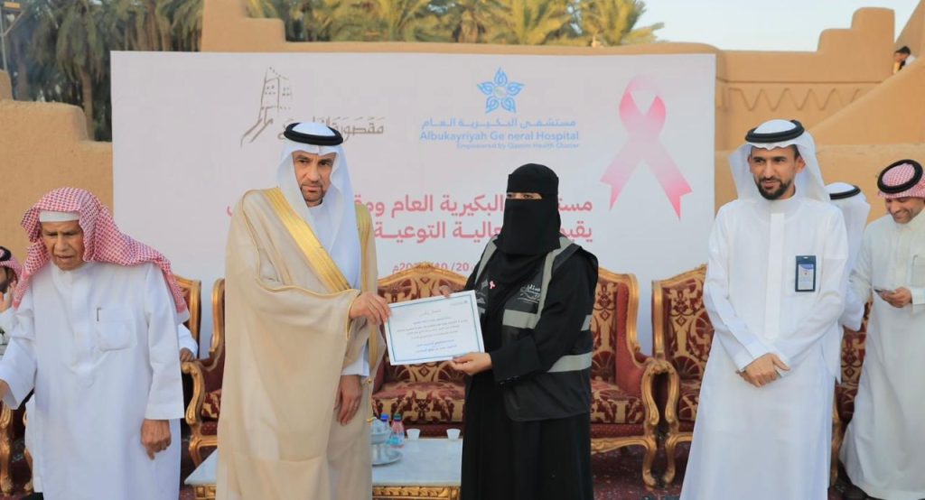 وأوضح مدير مستشفى البكيرية العام الدكتور ماجد السعدون أنه تم تشكيل فريقاً طبياً يُعنى بتوعية السيدات حول أهمية الكشف المبكر لسرطان الثدي، وتهدف الحملة التوعوية إلى تعزيز الوعي الصحي لدى المجتمع عن مرض سرطان الثدي وعوامل الخطورة المؤدية إليه وطرق الوقاية منه معرباً عن شكره وتقديره لمحافظ البكيرية على تدشينه للحملة ولجميع العاملين والمشاركين .