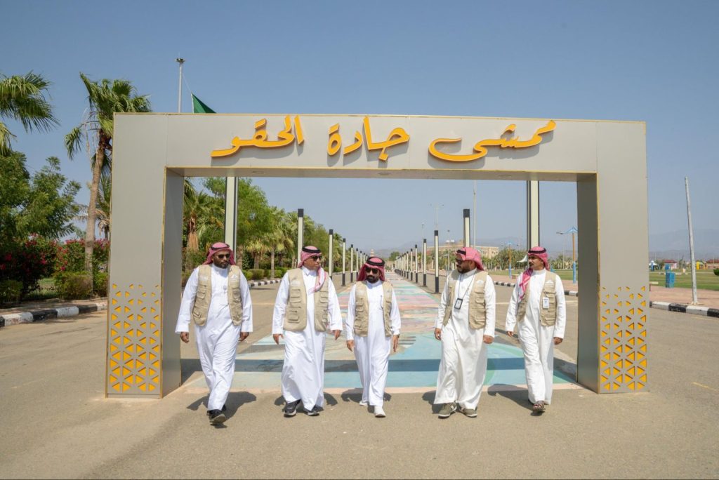بدأت الجولة من طريق الملك عبدالعزيز، حيث تتواصل أعمال التدخل الحضري الممتد من إشارة التوفيق حتى إشارة حراء، ليُعاد تشكيل الطريق كواجهةٍ حضريةٍ تليق بمدينةٍ تتألق على الساحل الشمالي لجازان.