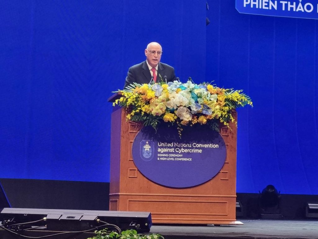 إن هذا الإنجاز القانوني علامة واضحة على الارادة الجماعية لبناء مقومات الأمن الرقمي، وتحقيق العدالة الجنائية، وحماية حقوق الأفراد والمؤسسات. إن جامعة الدول العربية التي كانت سباقة للانخراط في هذا التوجه بإقرار الاتفاقية العربية لمكافحة جرائم تقنية المعلومات منذ 2010 ستواصل، وفق رؤية متجددة تطوير التعاون الإقليمي تمشيا مع أحكام “اتفاقية هانوي” متطلعين لتكثيف الجهد الدولي لإرساء فضاء رقمي عالمي آمن ومتماسك لاحتواء الانتشار السرطاني للجريمة السبرانية بما يسهم في تعزيز السلام والأمن والاستقرار والتنمية المشتركة.