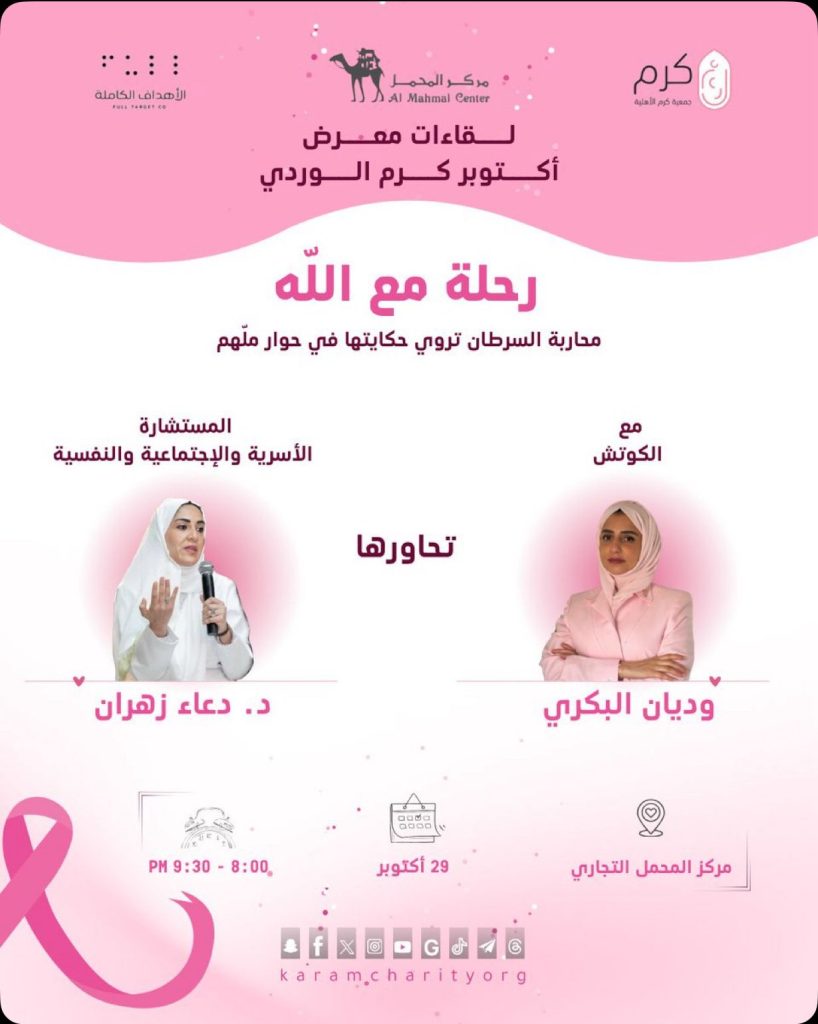 ضمن الأنشطة والبرامج والفعاليات والمبادرات التي تقوم بها جمعية كرم بجدة تقيم مساء غد الأربعاء التاسع والعشرون من شهر أكتوبر الحالي