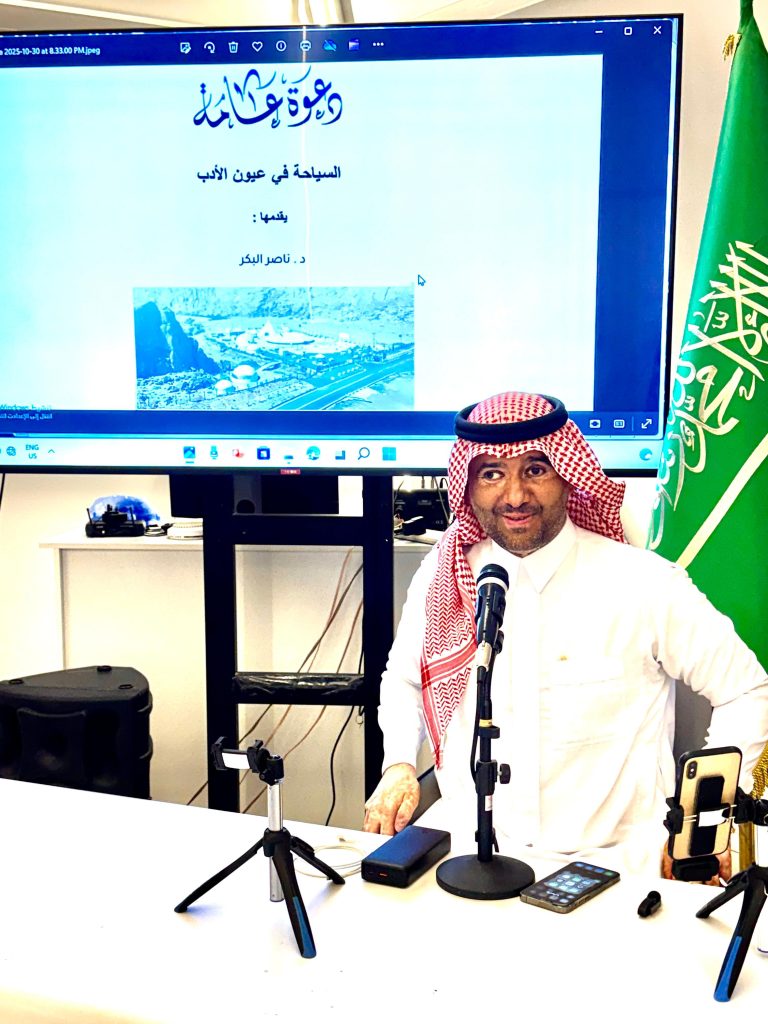ألقى الدكتور ناصر البكر محاضرة قيمة بعنوان “السياحة في عيون الأدب” في منارة حائل الفضائية وبحضور نخبة من المثقفين والمثقفات والمهتمين بالشأن الأدبي كانت المحاضرة أدبية