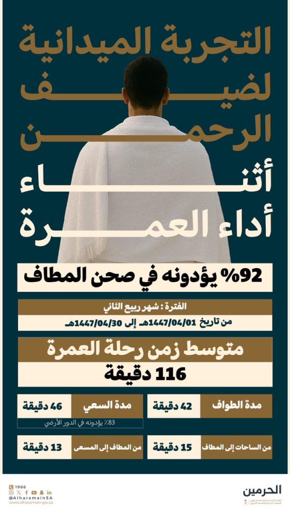 بأنه تم تسجيل الزمن الفعلي لأداء مناسك العمرة 116 دقيقة