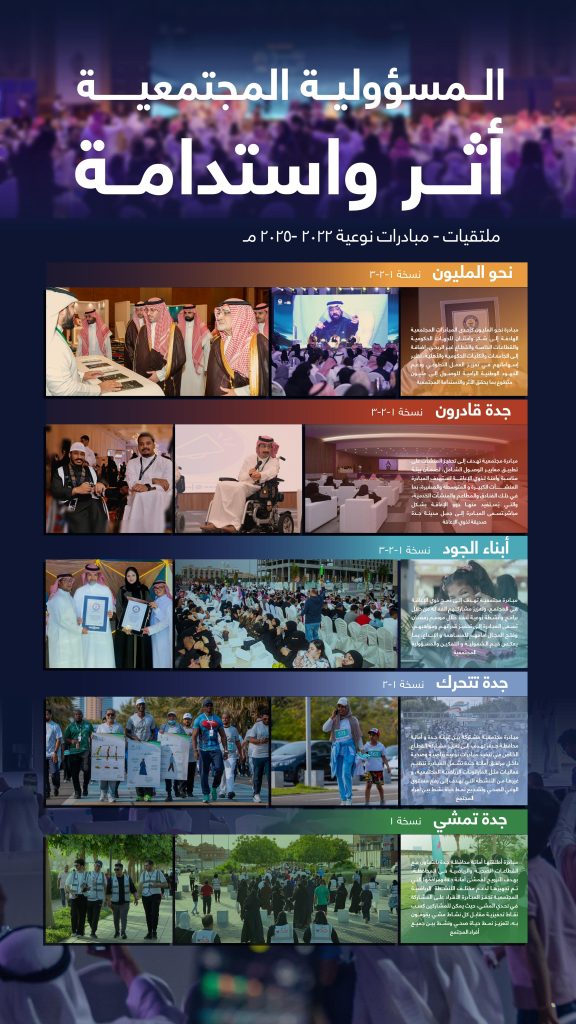 وتأتي في مقدمة هذه البرامج مبادرة «نحو المليون متطوع» التي أسهمت في تكريم الجهات الداعمة وتعزيز التعاون بين القطاعات لخدمة المجتمع المحلي، ومبادرة «جدة قادرون» التي تستهدف تمكين الأشخاص ذوي الإعاقة وتوفير بيئة شاملة في مرافق الأمانة، إلى جانب مبادرة «أبناء الجود» التي تعزز دمج ذوي الإعاقة في الفعاليات الرمضانية وتطوير مهاراتهم. كما أطلقت الأمانة مبادرتي «جدة تتحرك» و«جدة تمشي» الهادفتين إلى تشجيع المجتمع على ممارسة النشاط البدني واعتماد أسلوب حياة صحي من خلال فعاليات رياضية وبرامج تحفيزية.