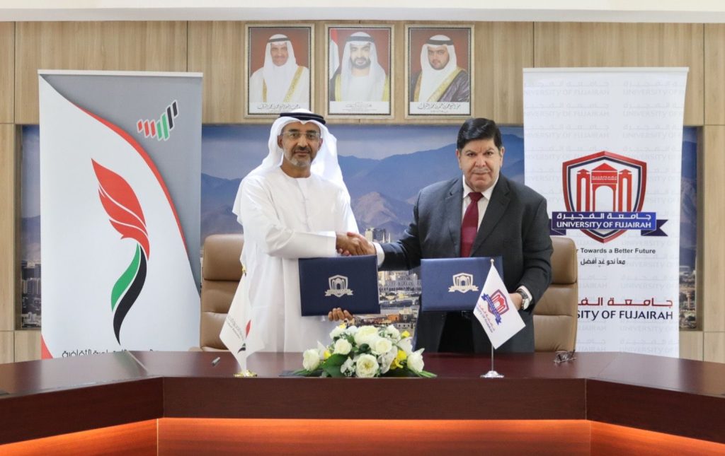 وقعت جامعة الفجيرة اتفاقية تعاون مع جمعية الفجيرة الاجتماعية الثقافية بمقر مكتبة الفجيرة الرقمية، حيث تهدف الاتفاقية إلى التعاون بين الجانبين، ودعم البحث العلمي والدراسات في المجالات التي تخدم الطرفين وإنجاز البحوث المشتركة، وتبادل المعرفة والخبرات المؤسسية بين الطرفين على كافة المستويات، وتنظيم المؤتمرات والندوات والمحاضرات وورش العمل في المجالات ذات الاهتمام بين الجانبين، وتسخير الموارد البشرية للطرفين للترويج للفعاليات المشتركة.
