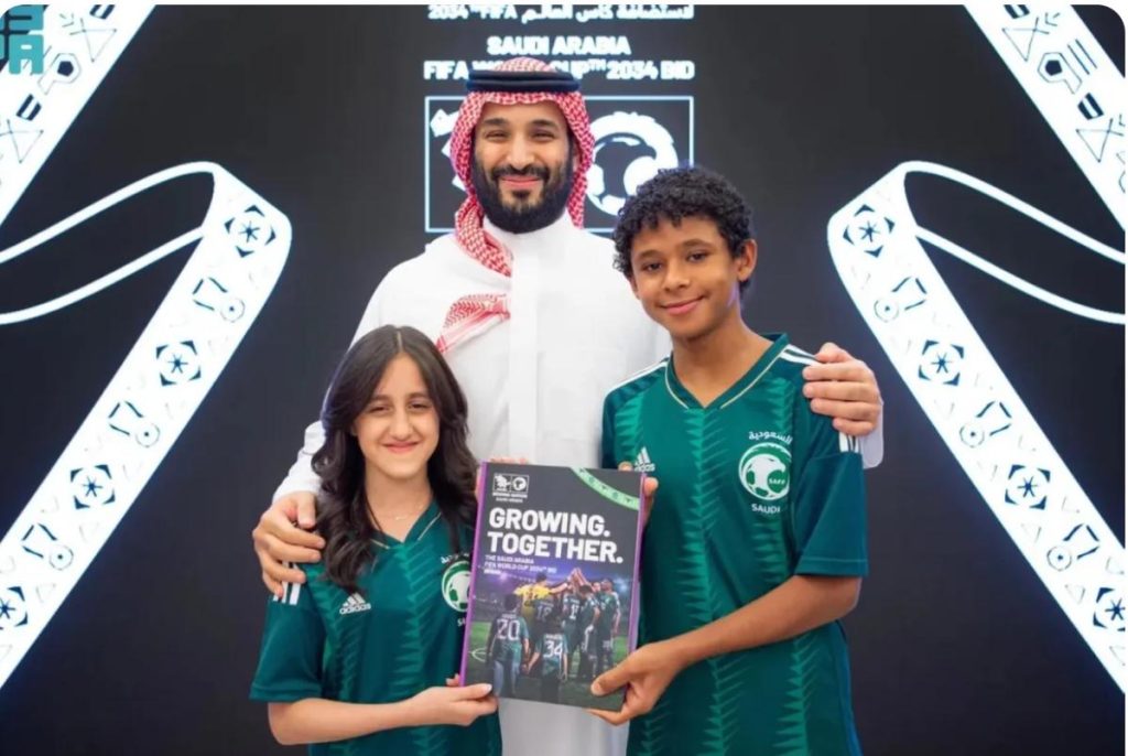 أدخل الطفلان “صالح حسام حناوي” ويبلغ من العمر 14 سنة، من مدينة جدة ويلعب في مركز الظهير الأيسر، وهو ضمن فريق مركز التدريب الإقليمي لدى الاتحاد السعودي لكرة القدم، والطفلة “عبير عبدالله أبا الخيل” وتبلغ من العمر 12 سنة، من مدينة جدة وتلعب في خط الوسط، ضمن مركز التدريب الإقليمي لدى الاتحاد السعودي لكرة القدم، اسميهما في تاريخ استضافة المملكة للحدث العالمي الرياضي المرتقب كأس العالم 2034، بعد مشاركتهما المميزة في ملف الترشح وتصدر صورهما في الإعلام العالمي، حيث استقبلهما سمو ولي العهد رئيس مجلس الوزراء الأمير محمد بن سلمان لملف ترشح المملكة لاستضافة المونديال.