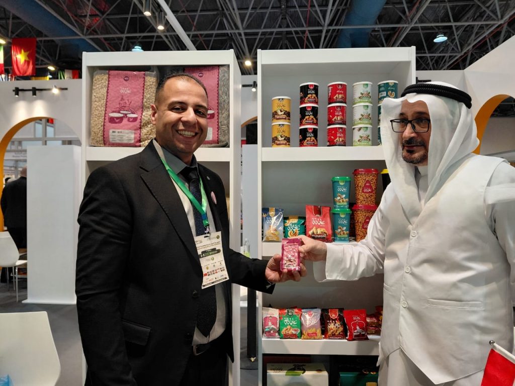 واعرب الأستاذ أحمد من جمهورية العراق عن سعادته هو وزملائه للمشاركة في المعرض والتعريف بالمنتجات العراقية بمختلف أنواعها من الفستق والحلويات والعصائر والمنتجات الغذائية الاخري
