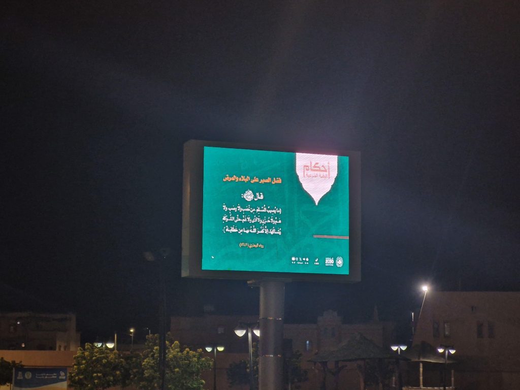 نشرت هيئة الأمر بالمعروف والنهي عن المنكر بمحافظة الحجرة بمنطقة الباحة محتوى برنامج (أحكام الرقية الشرعية) التوعوي، عبر الشاشات الإلكترونية في الشوارع والميادين العامة .