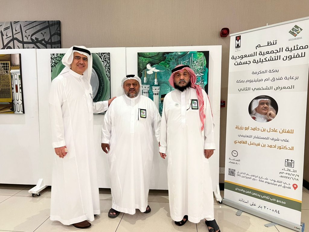افتتحت ممثلية الجمعية السعودية للفنون التشكيلية (جسفت) بمكة المكرمة مساء يوم الثلاثاء 9 / 12 / 2025م المعرض الشخصي الثاني للفنان التشكيلي الأستاذ عادل بن حامد أبو رزيزه، وذلك بحضور وتشريف سعادة المستشار التعليمي الدكتور أحمد بن فيصل الغامدي.