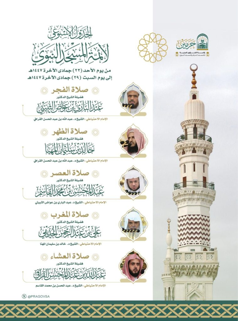 ثانيًا: جدول أئمة المسجد النبوي: