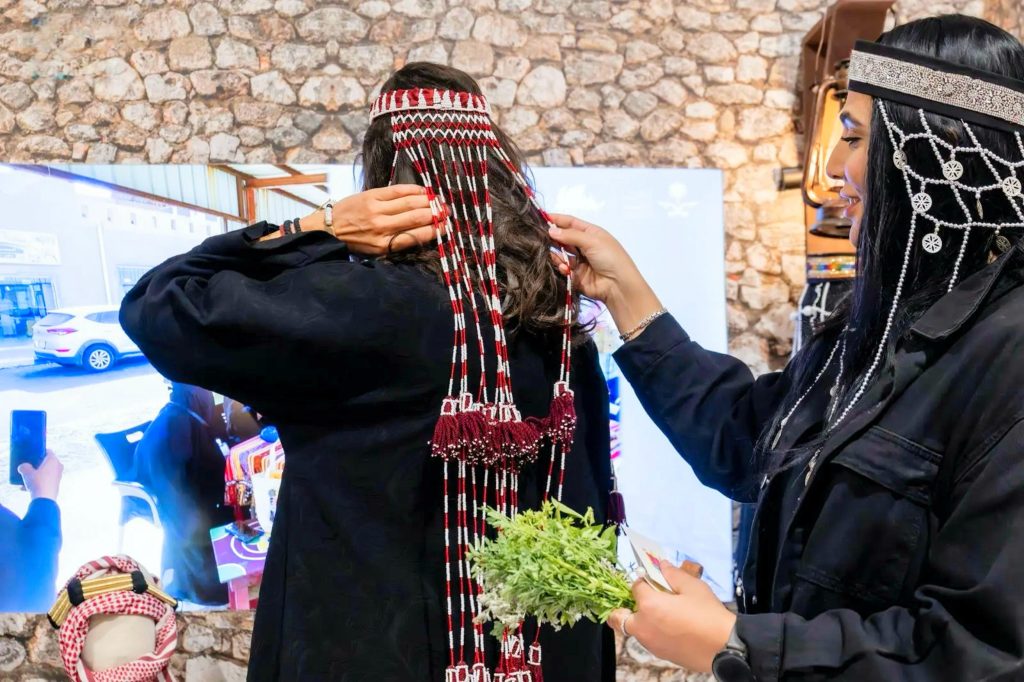 كما عززت الروائح العطرية للكادي والرياحين والشذاب التجربة الحسية، مصحوبة بترحيبة أهالي الباحة الشهيرة: «مرحباً هيل عد السيل»، لتكون عنصر جذب رئيسي يرسّخ الذاكرة الحسية للموقع. وأسهمت الملبوسات والأزياء المحلية، إلى جانب المشغولات الذهبية والفضية، في تعريف الزوار بأزياء المنطقة التقليدية وأدوات الزينة في السراة وتهامة والبادية، بما يعكس ثراء التنوع وجمال التراث المحلي.