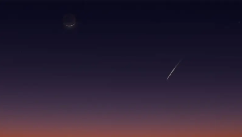 يُرصد بسماء السعودية والعالم العربي صبيحة يوم الاثنين 30 سبتمبر 2024 هلال القمر المتناقص والمذنب تسوتشينشان أطلس C/ 2023 A3 يزينان الأفق الشرقي قبل شروق الشمس بحوالي 45 دقيقة.