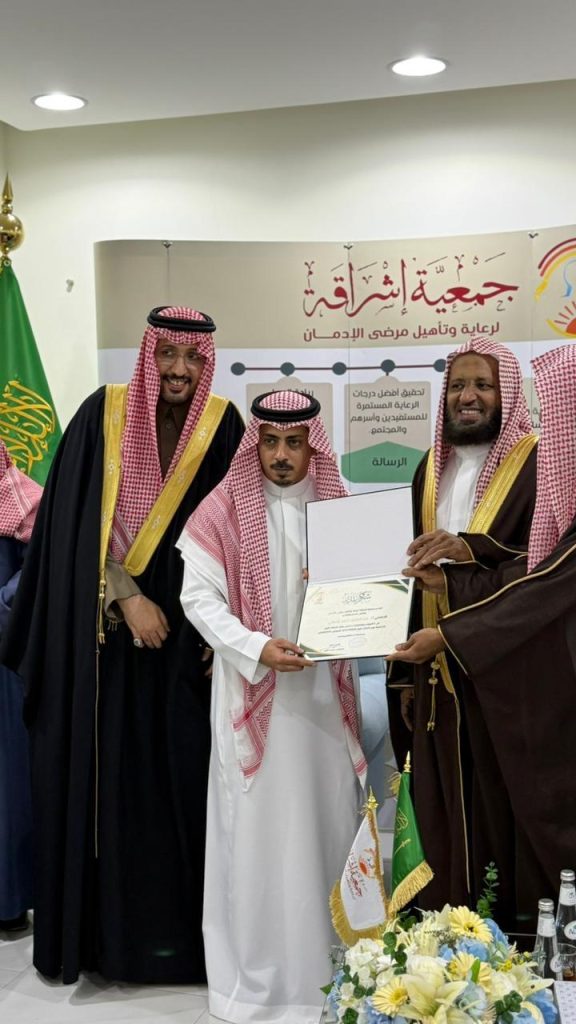 وتضمن الحفل محاضرة توعوية قدّمها عدد من المختصين في مجال علاج وتأهيل الإدمان، أوضحوا خلالها أن الإدمان مرض قابل للعلاج متى ما توفرت الإرادة لدى المريض، والدعم الأسري، والبرامج العلاجية والتأهيلية المتخصصة، مشيرين إلى الدور المحوري الذي تلعبه الجمعيات الأهلية في تقديم الرعاية المستمرة والمتابعة اللاحقة للمتعافين.