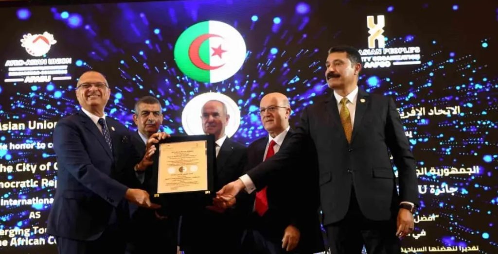 تسلّمت سلطات ولاية وهران،غرب الجزائر، سهرة الخميس، الجائزة الذهبية التي يمنحها الاتحاد الإفريقي الآسيوي للسياحة والتجارة الإلكترونية والاقتصاد، بعد فوز عاصمة الغرب الجزائري بلقب أفضل وجهة سياحية صاعدة في إفريقيا لسنة 2025، وذلك نهاية شهر أكتوبر الماضي.
