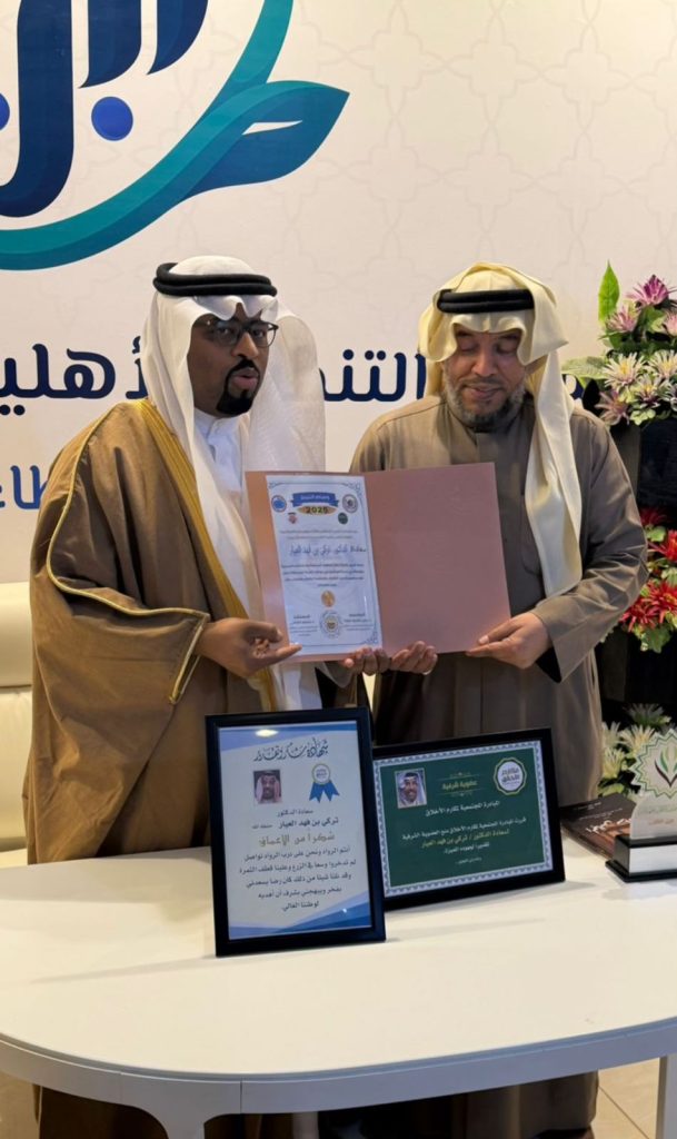 كرم مدير المبادرة المجتمعية مكارم الأخلاق المستشار أحمد علي آل مطيع تركي بن فهد العيار الشخصية المحترمة والمتميزة في مجاله، فقد حظي بتكريم مستحق له من المستشار أحمد بن علي المطيع في جمعية التنمية الاجتماعية بحي لبن بحضور المدير التنفيذي للجمعية ومنسوبي مبادرة مكارم الأخلاق والحضور الكبير من المسؤولين والإعلاميين والصحفيين ومحبي الدكتور تركي يعكس مدى تقديرهم له.