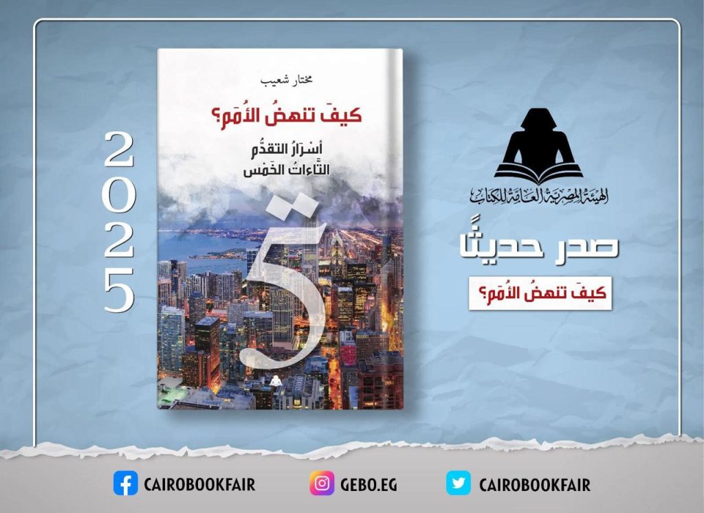 دشن الكاتب الصحفي الكبير مختار شعيب كتابه الجديد ( كيف تنهض الأمم ) والذي يعد الكتاب رقم (25) بعد طول انتظار دام (5) سنوات .. ومن جهته أوضح شعيب بان الكتاب يناقش سؤالنا الأبدي … لماذا تخلفنا وكيف نتقدم. إثارة لعقل الأمة عن التاءآت الخمس للتقدم. بحث في أسرار نهضة الأمم التي قرأت حولها (105) كتاب و (85) دراسة و (170) مقالة بمختلف اللغات . إنه بحث في أسئلة النهضة وما يجب علينا فعله .. آمل أن يحظي الكتاب لموضوعه بإثارة مزيد من النقاشات العامة حول سؤاله ومنهجه وخريطة فكره التي يقدمها عقل اشتغل مدة ربع قرن عليها مهموما بأمته ، معجونا بآمالها متطلعا لمستقبلها الذي تستحقه ، ومجدها الذي يجب أن تحييه بإعمال العقل والعلم والاستفادة من تجارب تقدم ونهضة الأمم التي زرت منها ٤٧ دولة .إنها قضية كبري للأمة لابد من البحث والاجتهاد فيها ، لوضع اجابات لأسئلة التقدم والنهضة ، وتقديم تصور لطريق التحديث والتنمية الشاملة .. آمل أن يبحث المتحاورون والرأي العام والإعلام مايضيف لقضايا هذا الحوار وخاصة قضيته المركزية كيف نتقدم ونتجاوز التحديات .