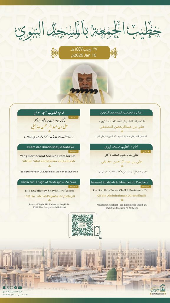 أوضحت رئاسة الشؤون الدينية بالمسجد الحرام والمسجد النبوي، أسماء خطيبا وإماما صلاة الجمعة في الحرمين الشريفين 27 رجب 1447هـ وذلك ضمن جدولها الدوري لتنظيم الإمامة والخطابة.