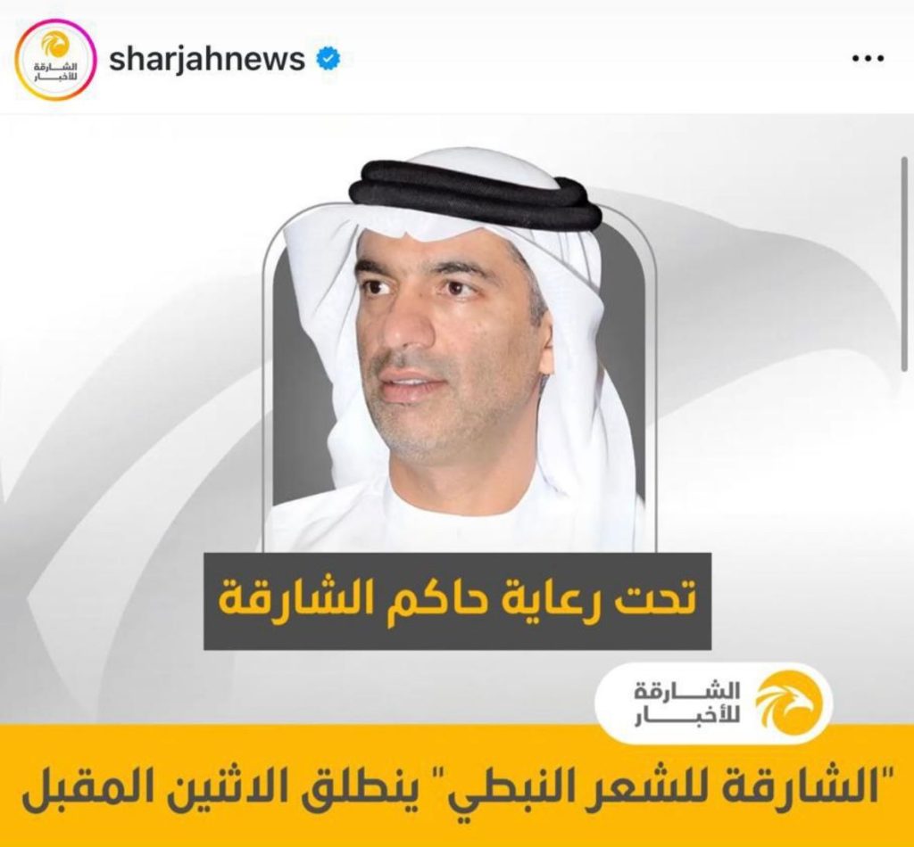 ولفت إلى أن هذا الاهتمام جعل من مهرجان الشارقة للشعر النبطي منصة ثقافية فاعلة تجمع الشعراء من الدول العربية، وتتيح لهم فضاءً رحباً لتبادل التجارب الإبداعية، مشيراً إلى أن تدشين صاحب السموّ حاكم الشارقة لمشروع إحياء بلدة الحيرة القديمة في مدينة الشارقة، وتأسيس مجلس الحيرة الأدبي، وكذلك توجيه سموّه بإصدار مجلة «الحيرة» من الشارقة المتخصصة في الشعر النبطي وشؤونه الثقافية والإبداعية؛ إنما تعد تجليات لهذا الاهتمام الواسع، موضحاً «إذ شكّلت رافداً مهماً للمشهد الشعري، وأتاحت مساحة واسعة أمام الشعراء لنشر قصائدهم وموضوعاتهم النقدية والفكرية المتصلة بالشعر النبطي».