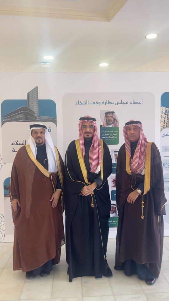 كرم صاحب السمو الملكي الأمير فيصل بن سلمان بن عبدالعزيز آل سعود الرئيس الفخري لوقف شفاء الصحي الخيري بالمدينة المنورة .. رجل الأعمال بدر بن عبدالله الجميح وذلك في الحفل الذي أقيم يوم امس الإثنين الموافق 7/شعبان / 1447هـ . في مقر جامعة الأمير مقرن بن عبدالعزيز باالمدينة المنورة في حفل تكريم الداعمين والشركاء لوقف شفاء الصحي وذلك بتشريف صاحب السمو الملكي الأمير سلمان بن سلطان بن عبد العزيز آل سعود أمير منطقة المدينة المنورة وصاحب السمو الملكي الأمير سعود بن خالد الفيصل نائب رئيس وقف شفاء الصحي . وبحضور أصحاب المعالي الوزراء وكبار رجال الأعمال. الداعمين لهذا الوقف الخيري .