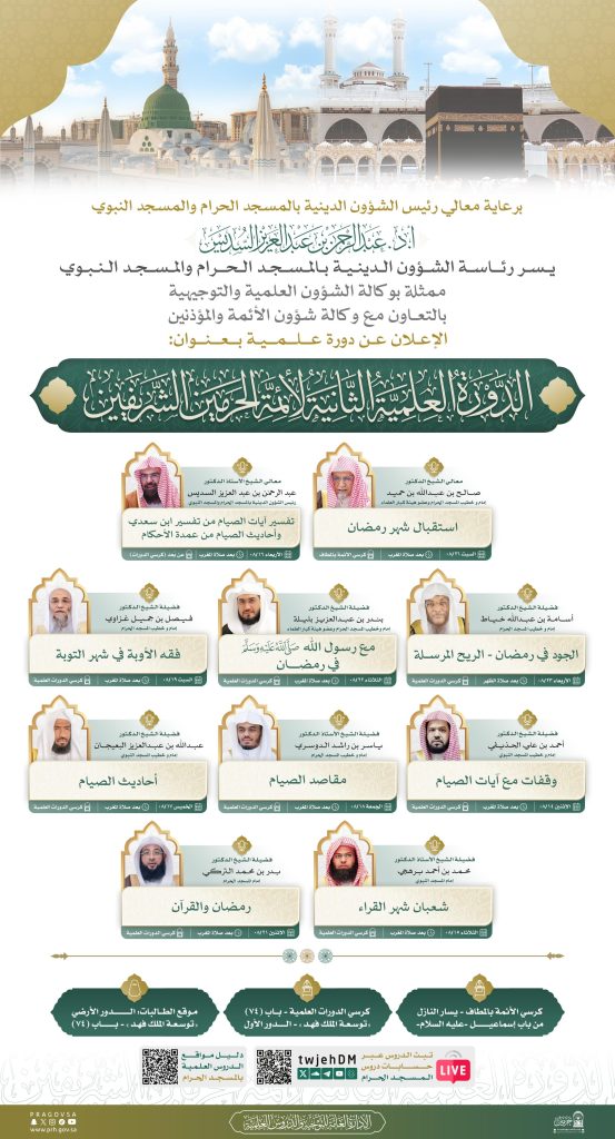 تزامنًا مع إطلاق خطتها التشغيلية لشهر رمضان المبارك، عن انطلاق الدورة العلمية الثانية لأئمة الحرمين الشريفين من رحاب المسجد الحرام،