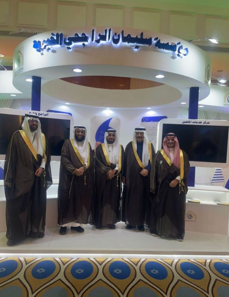 الملتقى شهد مشاركة مؤسسة الراجحي، حيث التقط الأعضاء صورة تذكارية في البوث، ويتقدم الحضور في البوث الأستاذ القدير خالد عبدالرحمن سليمان الراجحي والرئيس التنفيذي للمؤسسة الشيخ إبراهيم المحسن.