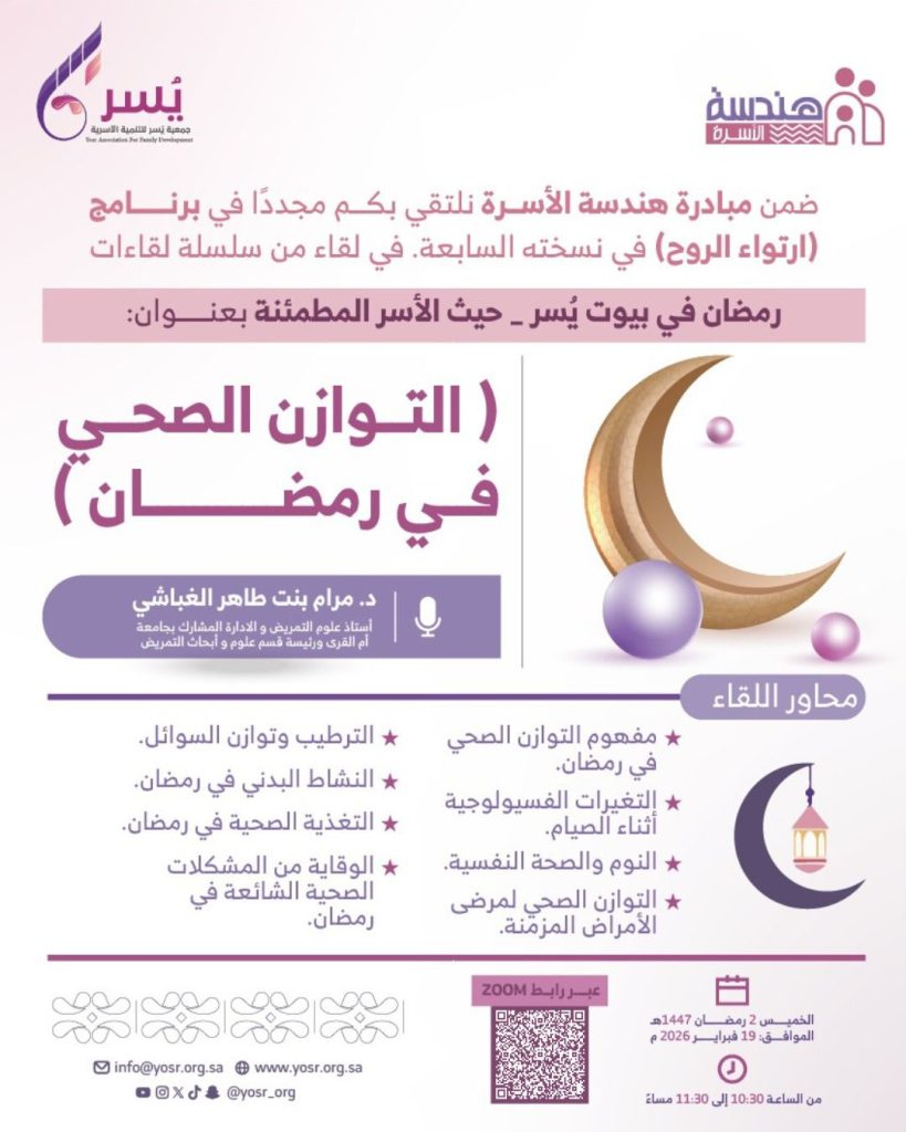 وضمن سلسلة لقاءات رمضان في بيوت يُسر _ حيث الأسر المطمئنة