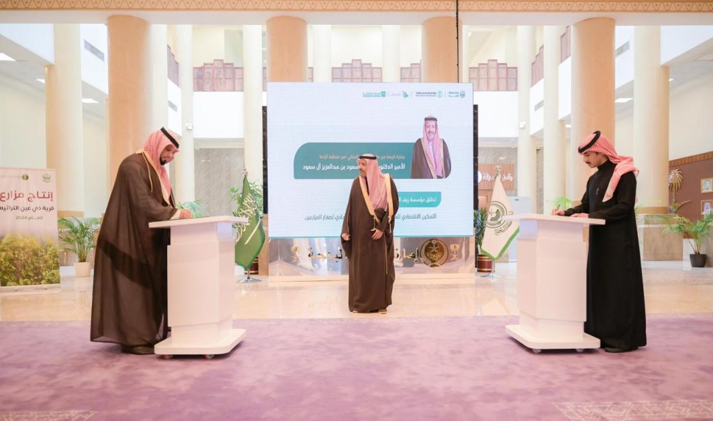 كما شهد سموه تدشين مبادرة التمكين الاقتصادي للمرأة الريفية بالشراكة بين مؤسسة ريف الأهلية ومؤسسة المجدوعي الخيرية. تستهدف هذه المبادرة دعم المرأة الريفية وتمكينها اقتصاديًا من خلال توفير فرص عمل مستدامة، ودعم المشاريع الصغيرة والمتوسطة، وتطوير المهارات الإنتاجية والتشغيلية. كما تتضمن تقديم برامج تدريبية وتأهيلية لعدد 25 مستفيدة في منطقة الباحة، مع توفير الدعم الفني وتعزيز قنوات التسويق للمنتجات الريفية، بهدف دمج المرأة الريفية بشكل فعال في التنمية الاقتصادية والاجتماعية.
