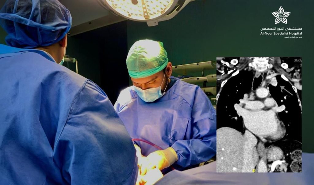 تمكّن فريق طبي متخصص مكون من اقسام (جراحة الصدر والتخدير والتمريض والعمليات) في مستشفى النور التخصصي – عضو تجمع مكة المكرمة الصحي – من إجراء عملية جراحية دقيقة لاستئصال انتشار ورمي في الرئة اليسرى باستخدام تقنية المنظار الجراحي أحادي الفتحة، وذلك ضمن مسار الرعاية الجراحية التخصصية أحد مسارات نموذج الرعاية الصحية السعودي.