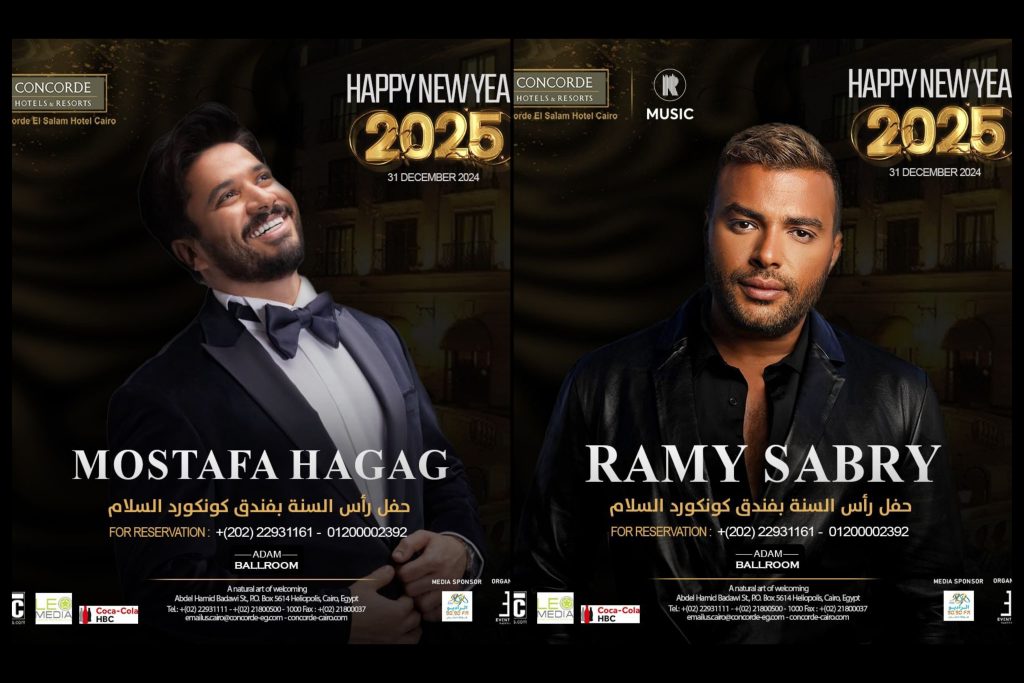 يستعد المطربان رامي صبري ومصطفى حجاج لأحياء حفل ضخم بمناسبة رأس السنة في مصر، وذلك يوم الثلاثاء الموافق31 ديسمبر 2024 بإحدى الفنادق الكبرى بالقاهرة.