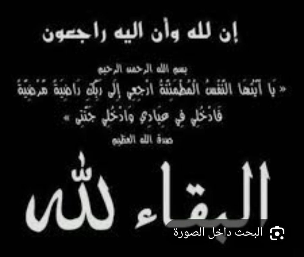 ببالغ الاساء والحزن ننعي والدتي التي انتقلت الى رحمة الله ظهر يوم الاثنين الموافق ١٤٤٦/٧/١٣ بعد معاناتها مع المرضي الذي الم بها نسال الله ان يرحمها ويغفر لها ويتغمدها بواسع رحمته وان يجعل قبرها روضة من رياض الجنه ويغسلها بالماء والثلج والبرد الحمد الله على كل حال