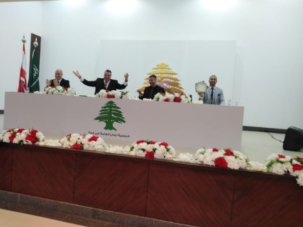 بدأت الأمسية بكلمة سعادة القنصل العام لجمهورية لبنان بجدة الأستاذ وليد منقاره