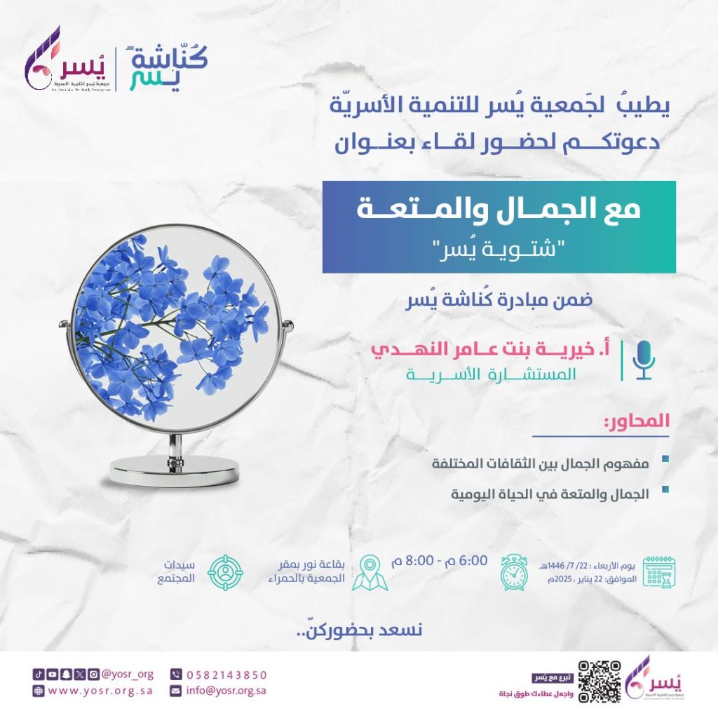 ضمن الأنشطة والبرامج والفعاليات والمبادرات التي تقوم بها جمعية يسر للتنمية الأسرية بمكة المكرمة وضمن مبادرة “شتوية يُسر”