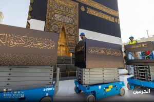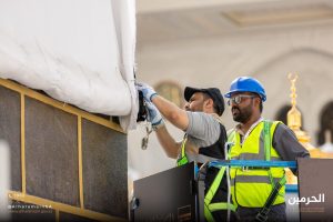 المشرفة استعدادًا لتغييرها بأخرى جديدة مع مطلع العام الجديد 1447هـ