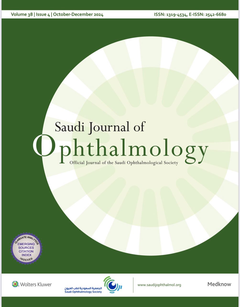 Saudi Journal of Ophthalmology ، وهي المجلة العلمية الرسمية للجمعية السعودية لطب العيون عن تحقيق إنجاز علمي مميز تمثل في ارتفاع معامل التأثير للمجلة إلى 1.2 لعام 2024 ، وذلك وفقاً لتقرير ( Journal Citation Reports )