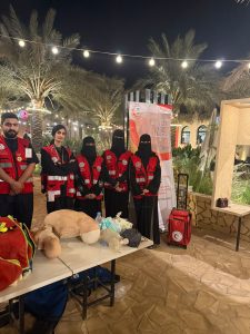 أقام الفريق التطوعي التابع لهيئة الهلال الأحمر السعودي بمنطقة القصيم بالتعاون مع ادارة التدريب والتثقيف المجتمعي ركن توعوي وتثقيفي عن الإسعافات الأولية لزوار والجمهور المتواجد في منتزه ريف جلاس من المواطنين والمقيمين بالاضافة إلى التعريف عن البرامج التدريبية والتطوعية التابعة لهيئة الهلال الأحمر السعودي .