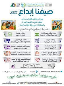 تحت شعار “معًا نصنع صيفًا فريدًا مليئًا بالإنجازات والذكريات السعيدة”، تطلق جمعية الطائف الخيرية لذوي الاحتياجات الخاصة يوم الاثنين القادم برنامجها الصيفي “صيفنا إبداع” لعام 2025، وذلك بمقر الجمعية بمحافظة الطائف.