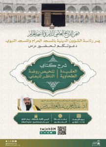 “شرح كتابي العقيدة الطحاوية، وتلخيص روضة الناظر”، وذلك مساء يوم غد الأربعاء الموافق 14 محرم 1447هـ، بعد صلاة المغرب مباشرة، في رحاب المسجد الحرام.