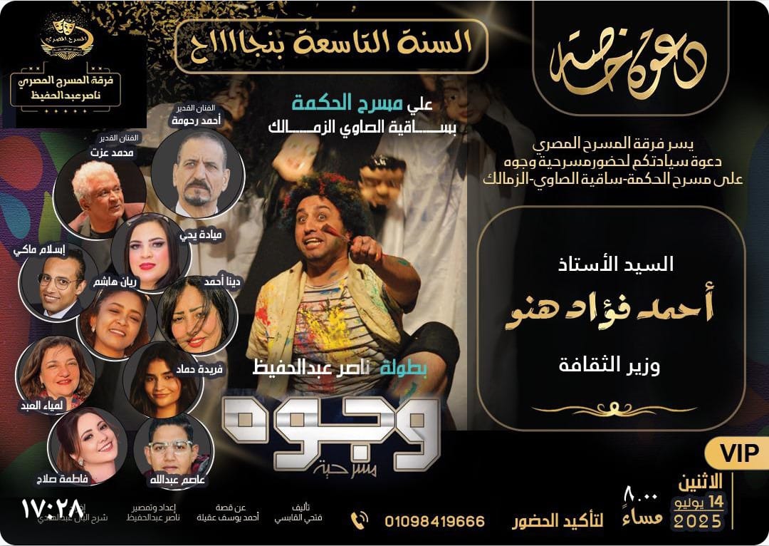 ٢٤ ساعة وينطلق العرض المسرحي المميز ( وجوه ) في عامه التاسع ، حيث مازالت الإستعدادات تجري علي قدم وساق لإستقبال واحدة من أبرز العروض المسرحية وأكثرها تميزآ وإختلافآ بالآونة الأخيرة بالمسرح المصري .
