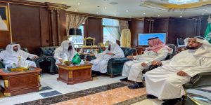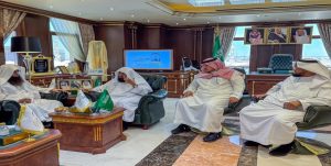 أستقبل معالي رئيس الشؤون الدينية بالمسجد الحرام والمسجد النبوي الشيخ الأستاذ الدكتور عبدالرحمن بن عبدالعزيز السديس بمكتبه برئاسة الشؤون الدينية بالمسجد النبوي فضيلة الشيخ الدكتور محمد بن أحمد الخضيري مساعد رئيس الشؤون الدينية بالمسجد النبوي، وفضيلة الشيخ عبدالله بن حطاب الحنيني الوكيل المساعد للشؤون الدينية بالمسجد النبوي، وأصحاب الفضيلة والسعادة مستشاري رئاسة الشؤون الدينية بالمسجد النبوي.